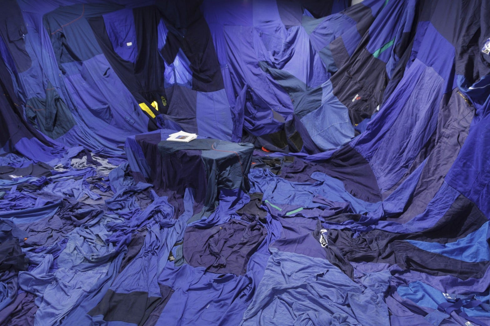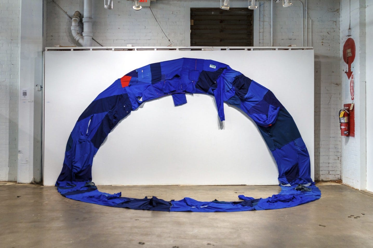 Inspired by Arte Povera, and Feminist and Site-specific art, my work blends the everyday with the uncanny. From photographs of human skin printed on vinyl to a tablecloth quilted from blue workwear, I’m always exploring how solid forms evoke movement and raising questions about how we live today.